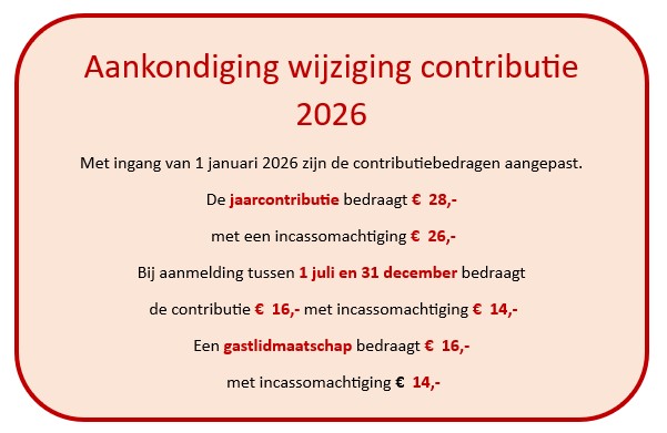 Per 1 januari 2026 worden de contributie bedragen aangepast.